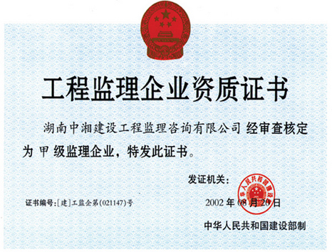 工程監(jiān)理企業資質證書