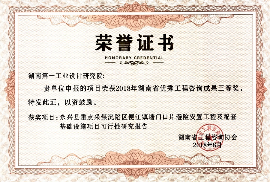 湖南省優(yōu)秀設計表揚金獎(1984)